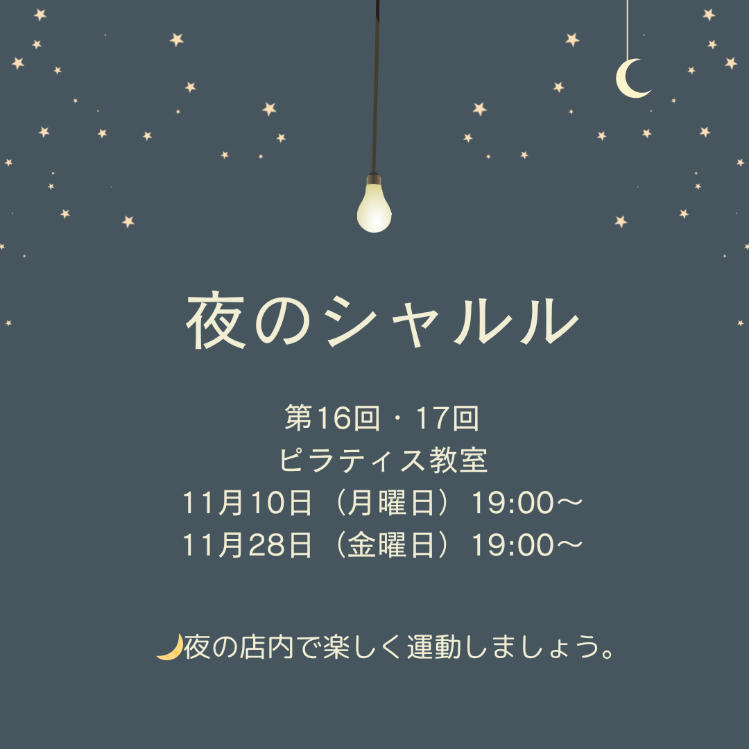 11月『夜のシャルル・ピラティス教室』のお知らせ