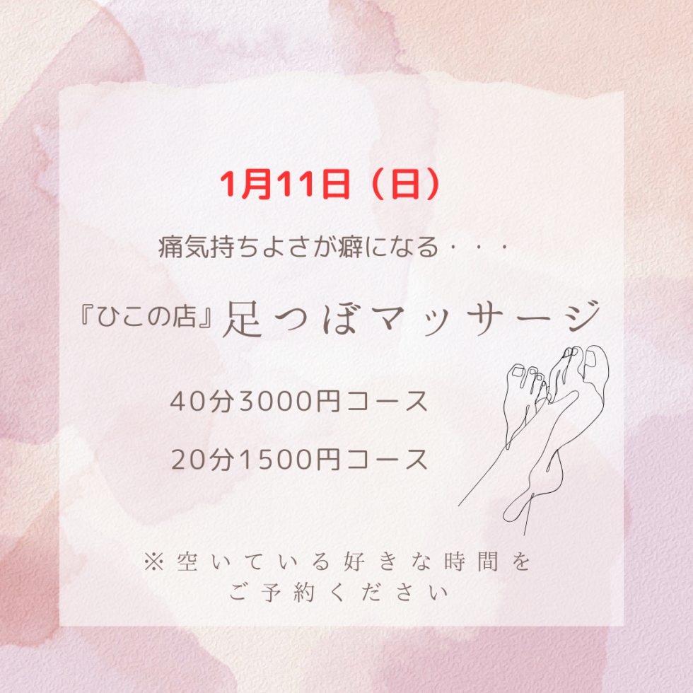 出張足つぼマッサージの予約表です。お正月の疲れを一掃しませんか?