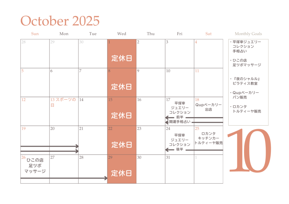 10月の月間スケジュール